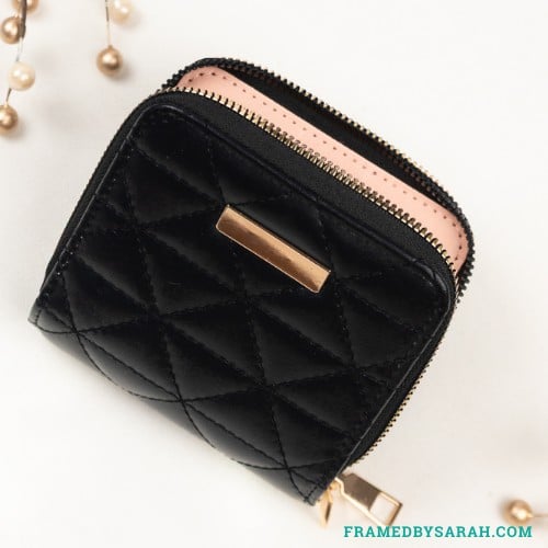 This super cute, super functional wallet was made to go with the woven belt bag, but you’ll love it with any bag. It’s square, so it doesn’t take up too much space. But with two zippers, and a ton of space inside to hold all your cards and cash, you’ll find it’s the perfect size.