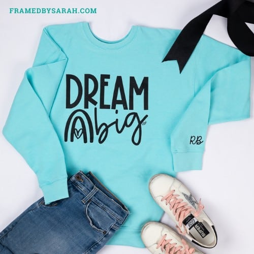 This super soft Tultex sweatshirt is the perfect shade of blue. And the message, “Dream Big” is a reminder to follow your dreams.