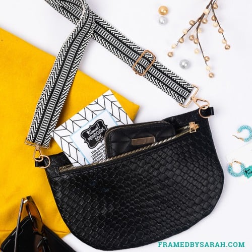 A little bit belt bag, a little bit crossbody, a whole lot of fun and function. This oh-so-on-trend black woven belt bag is just the right size for whatever you need. And it’s wearable, which means you don’t have to worry about setting it down and forgetting it, especially during this busy time of year.