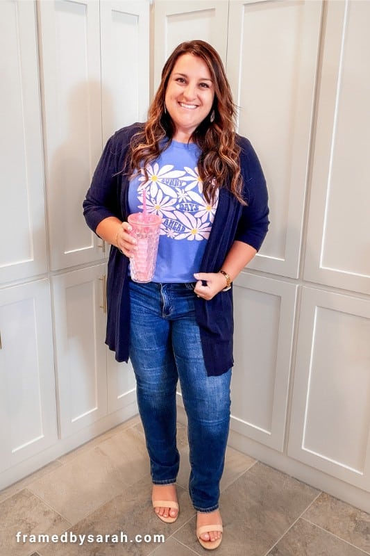 I paired the tee with my favorite everyday pair of jeans for a look that’s simple but still feels complete. Adding a crossbody bag keeps things hands-free and a pair of easy earrings to finish it off.